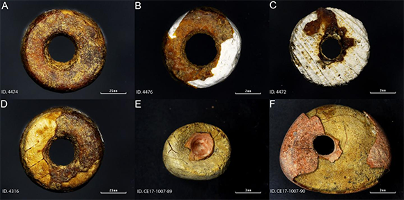 קונכיות מצופות בתערובת של שרף, שעווה ופיגמנטים טבעיים שהודבקו יחד בדבק מעצמות. חרוזים דמויי ענבר | מקור: Odriozola et al., 2019