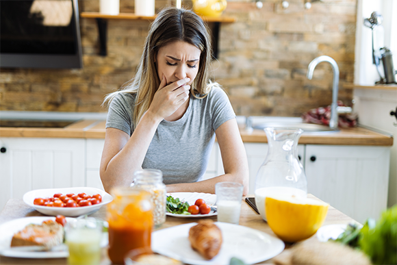 התברר שהבחילה והירידה בתיאבון אינן תלויות זו בזו, ושבכל אחת מהן מעורבות קבוצות  נפרדות של תאי עצב. אישה סובלת מבחילה | Goksi, Shutterstock