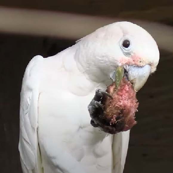 קקדו גופין נעזר בכלי שהכין לאכילת פרי קרדיט: Curr. Biol., Aug. 31, 2021 Vol. 31, Issue 20
