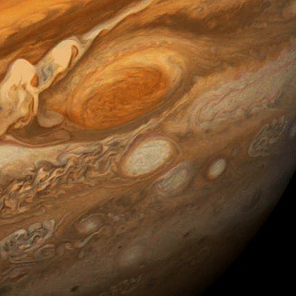 הכתם האדום הגדול באטמוספרה של צדק. צילום: NASA