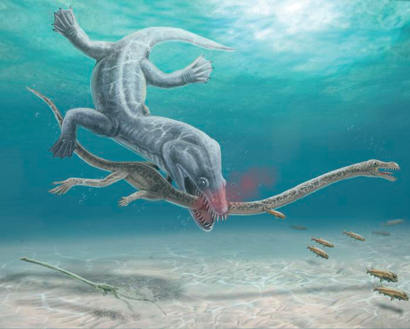 צוואר התניסתרופוזאורים היה יעד מפתה לטורפים | איור: Roc Olivé