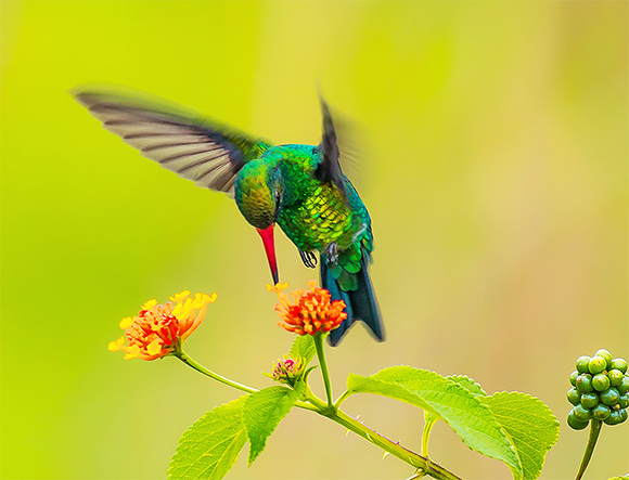 החוקרים השתמשו בגולגולת של קוליברי לדמות ביקור של הציפור בפרח נוסף. ציפור ממשפחת הקוליבריים | Jose Mauro Costa Monteiro, Shutterstock