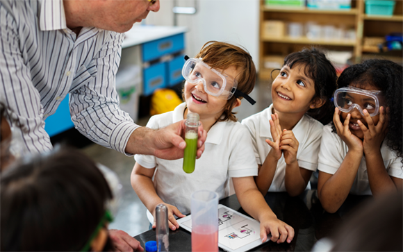 הנתונים מראים שבר כפול – הן במספרם המצטמצם והולך של המורים למדעים ולמתמטיקה, והן באיכות ההכשרה המקצועית שלהם. מורה מראה ניסוי בכימיה לילדים | Shutterstock, Rawpixel.com