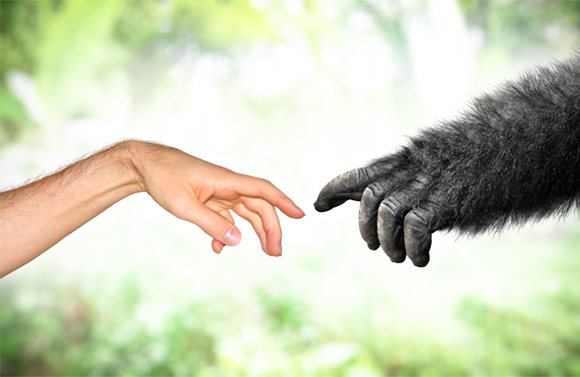 תיאורית האבולוציה מעוררת התנגדות וסערת רגשות מאז היום בו הוצגה לציבור. ציור של יד אדם הנשלחת לעבר יש שימפנזה | Shutterstock, David Carillet