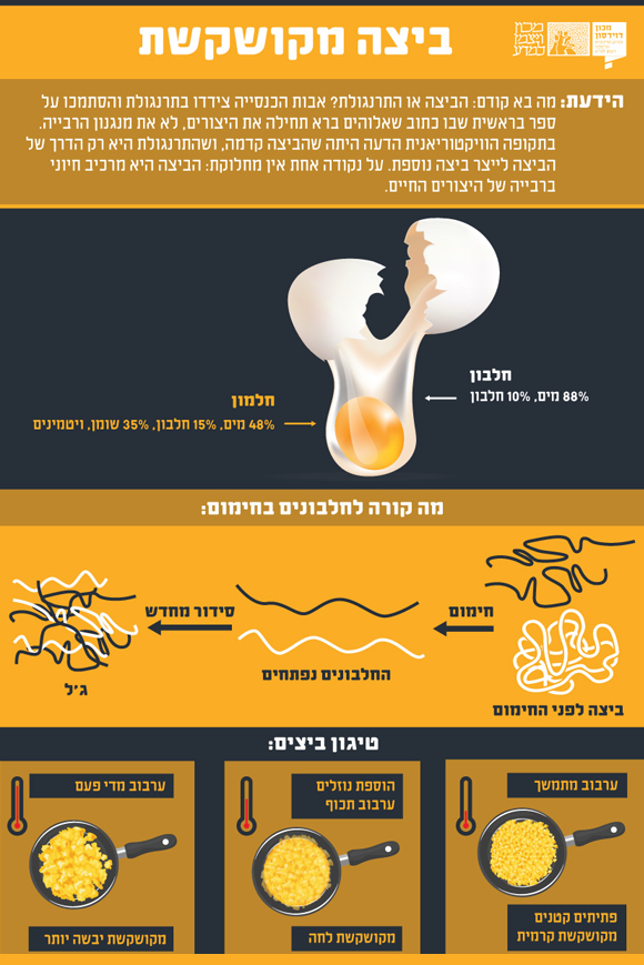 לסיכום, נראה פשוט לשבור ביצה במחבת חמה ולאחר חמש דקות ליהנות מביצה מקושקשת קרמית ועסיסית. אבל הבנה מדעית של התהליכים המתרחשים יובילו לקבלת המקושקשת הרצויה לנו.