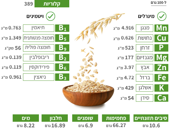 ערכים תזונתיים של שיבולת שועל | מקור: USDA National Nutrient Datbase; Alter-ego, Shutterstock