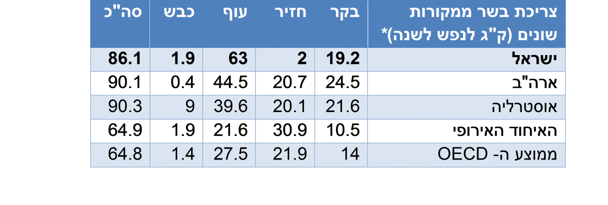 גם העוף עמד על הכוונת של "המערכת". לפי הנתונים שהביאו, תושבי ישראל צורכים כ-62 ק"ג עוף לנפש בשנה, פי שלושה מהצריכה הממוצעת באירופה שעומדת על כ-20 ק"ג לנפש לשנה. עם זאת, התוכנית התעלמה לחלוטין מצריכת שאר סוגי הבשר. נכון אמנם שהישראלים אוכלים הרבה עוף, אבל מה בנוגע לבשר בקר? ומהם הרגלי הצריכה בשאר העולם? הרי מסיבות דתיות מרבית הציבור בישראל אינו אוכל בשר חזיר, שהוא מאכל זול וזמין מאוד במקומות אחרים בעולם. ואכן, נראה שבשר העוף בישראל אכן משמש תחליף לסוגי בשר אחרים: