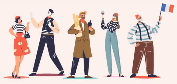 הישענות על נתונים ברמת האוכלוסייה ולא ברמת הפרט עלולה להוביל ל”כשל אקולוגי” שעשוי להחליש את מסקנות המחקר. קריקטורה של דמויות אופייניות לצרפת, כולל יין ובגט | zuperia, Shutterstock