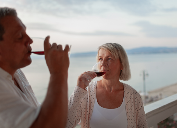 מחקר מטא-אנליזה מצא שמשתנים כלכליים וחברתיים משפיעים על הסיכון לתמותה מצריכת אלכוהול. אישה וגבר שותים יין אדום | d13, Shutterstock