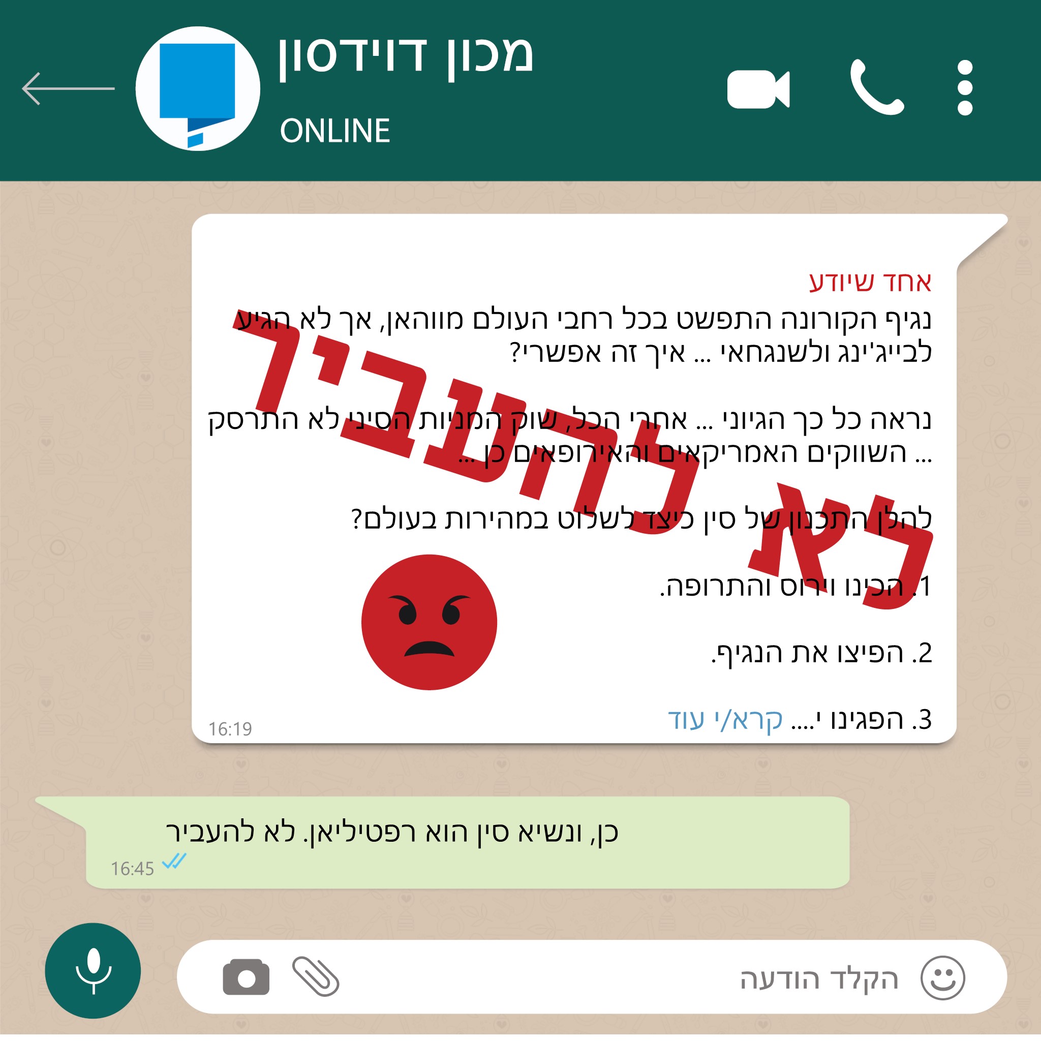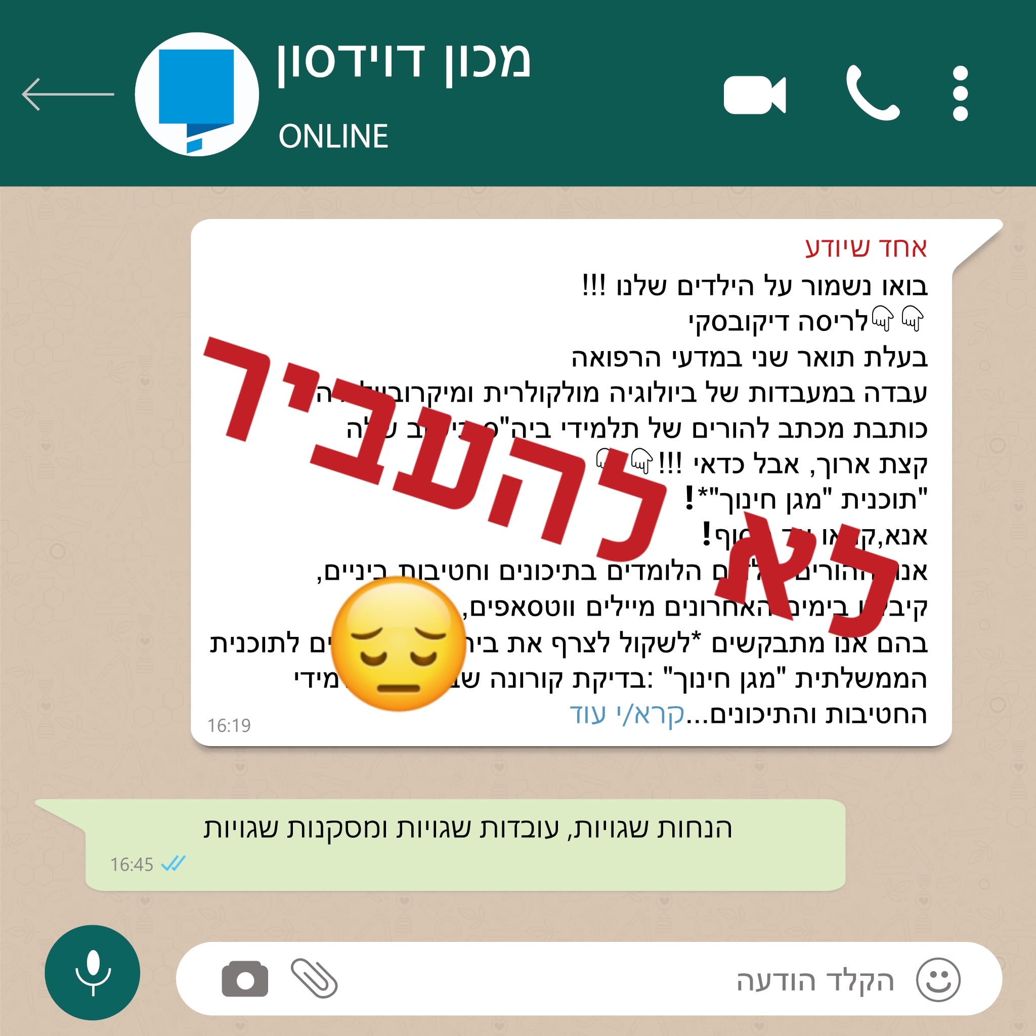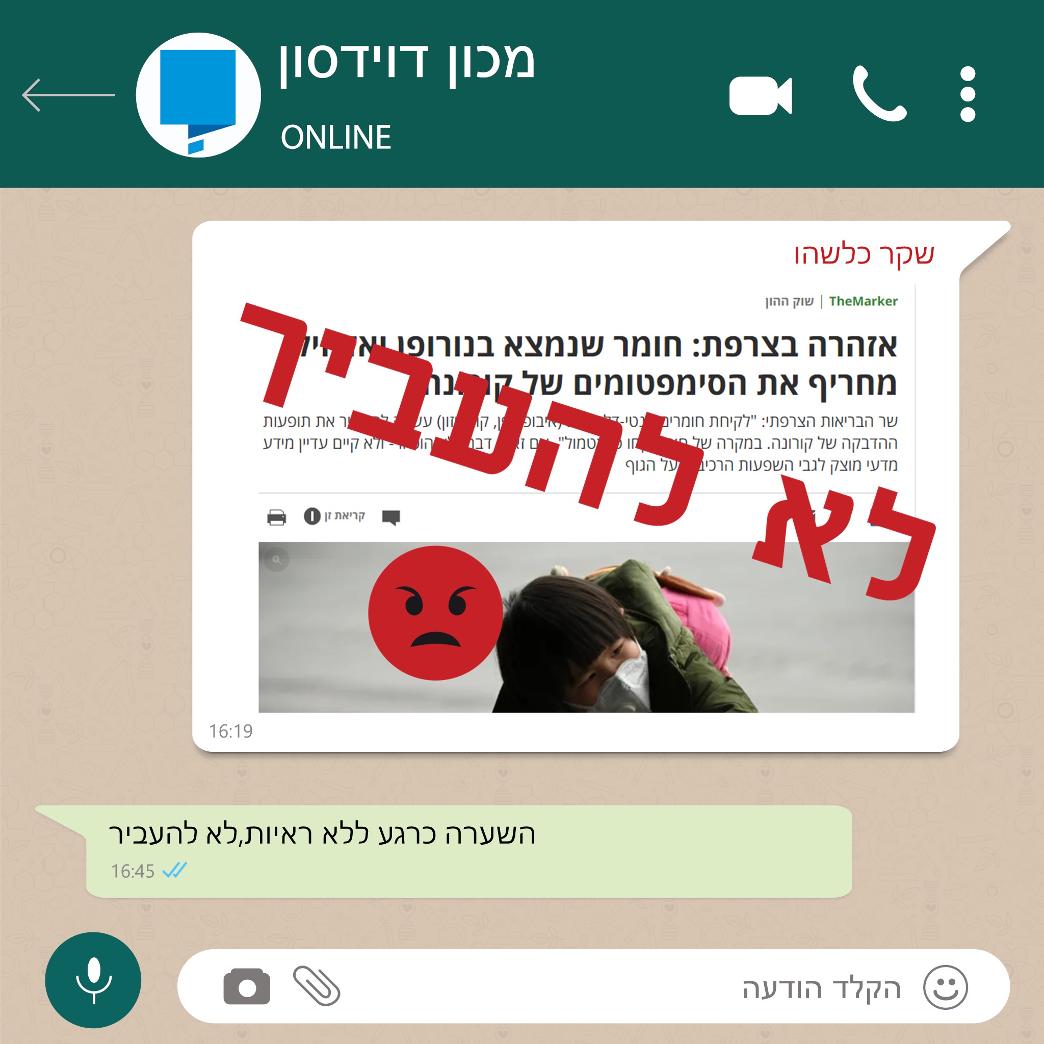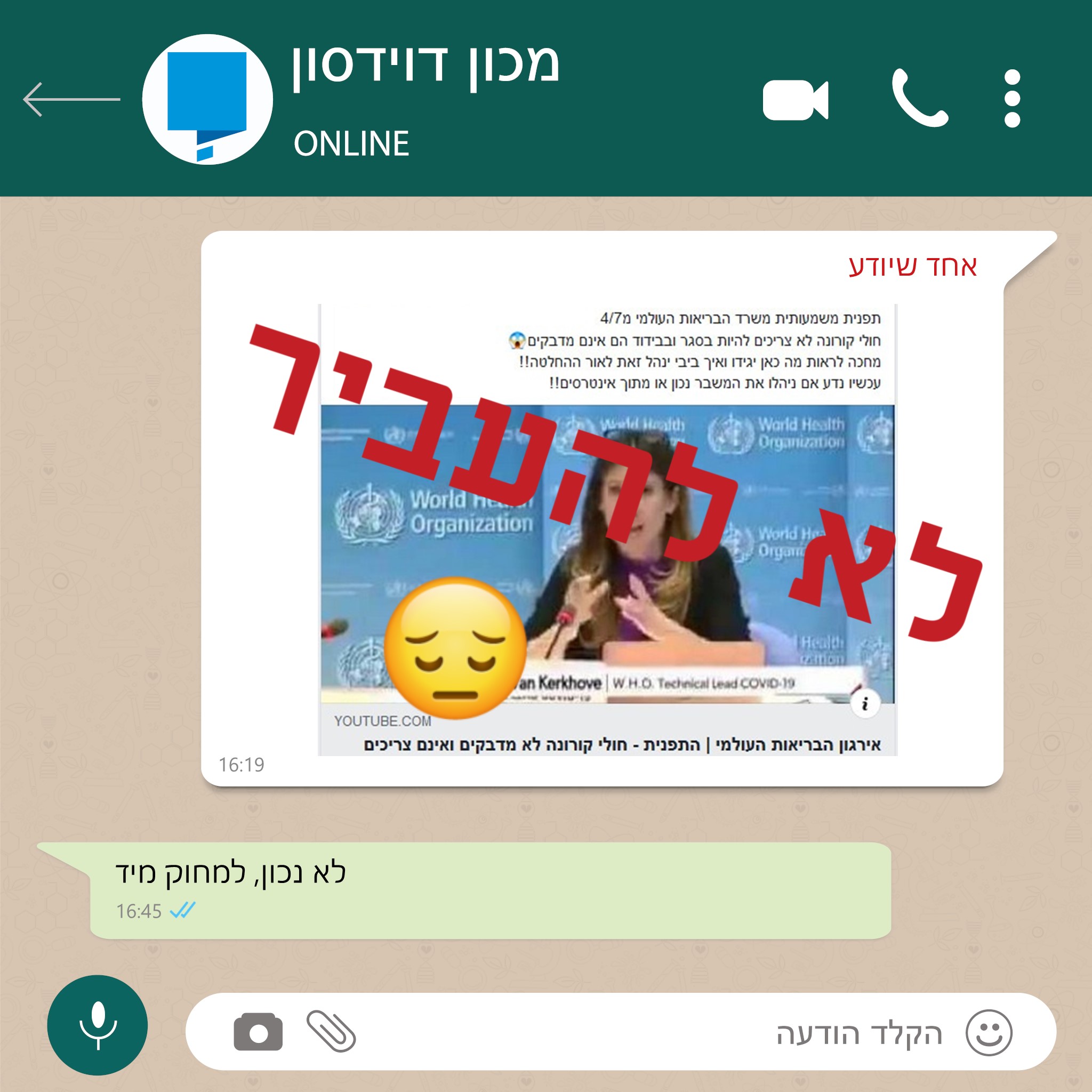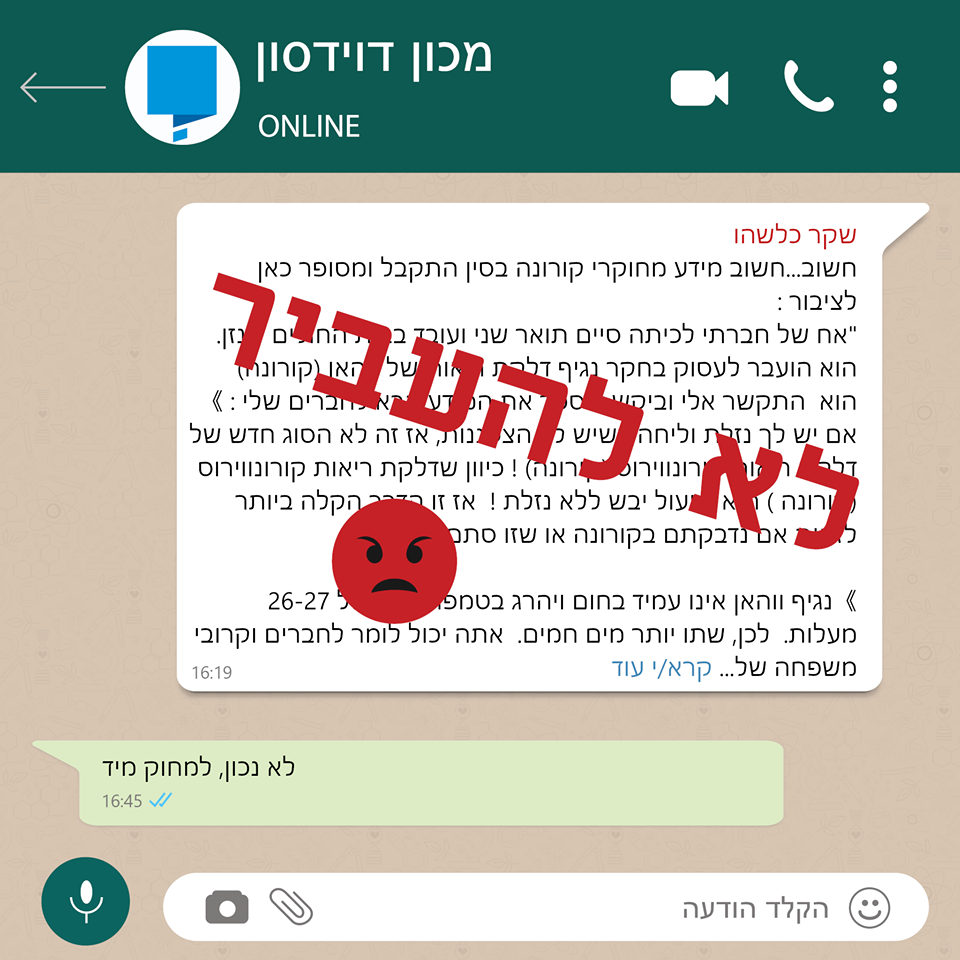 אנחנו כמעט מסכימים עם שורת הסיכום: בהצלחה לכולם ושימרו על עצמכם. אבל אל תעבירו מידע שגוי, במיוחד לא מידע שכולל בקשה שתעבירו אותו ל"כמה שרק אפשר".