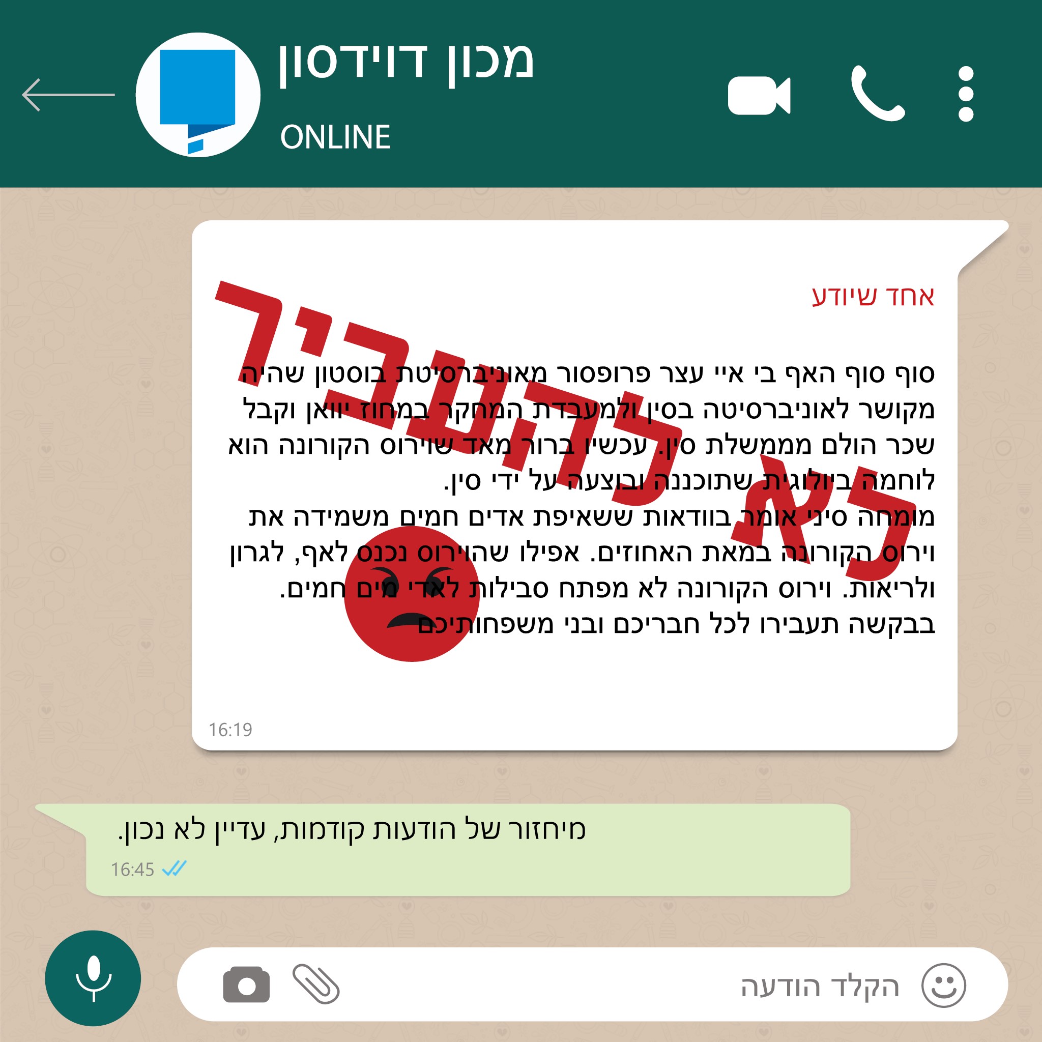 למפיצי פייק ניוז על COVID-19, המחלה לה גורם הנגיף SARS-CoV-2, נגמרו כנראה הרעיונות, אז הם עברו לארוז מחדש הטעיות שכבר הופצו על הנגיף והמחלה. גם השימוש בהודעות קוליות גובר – אולי אנשים נוטים להאמין להן יותר?