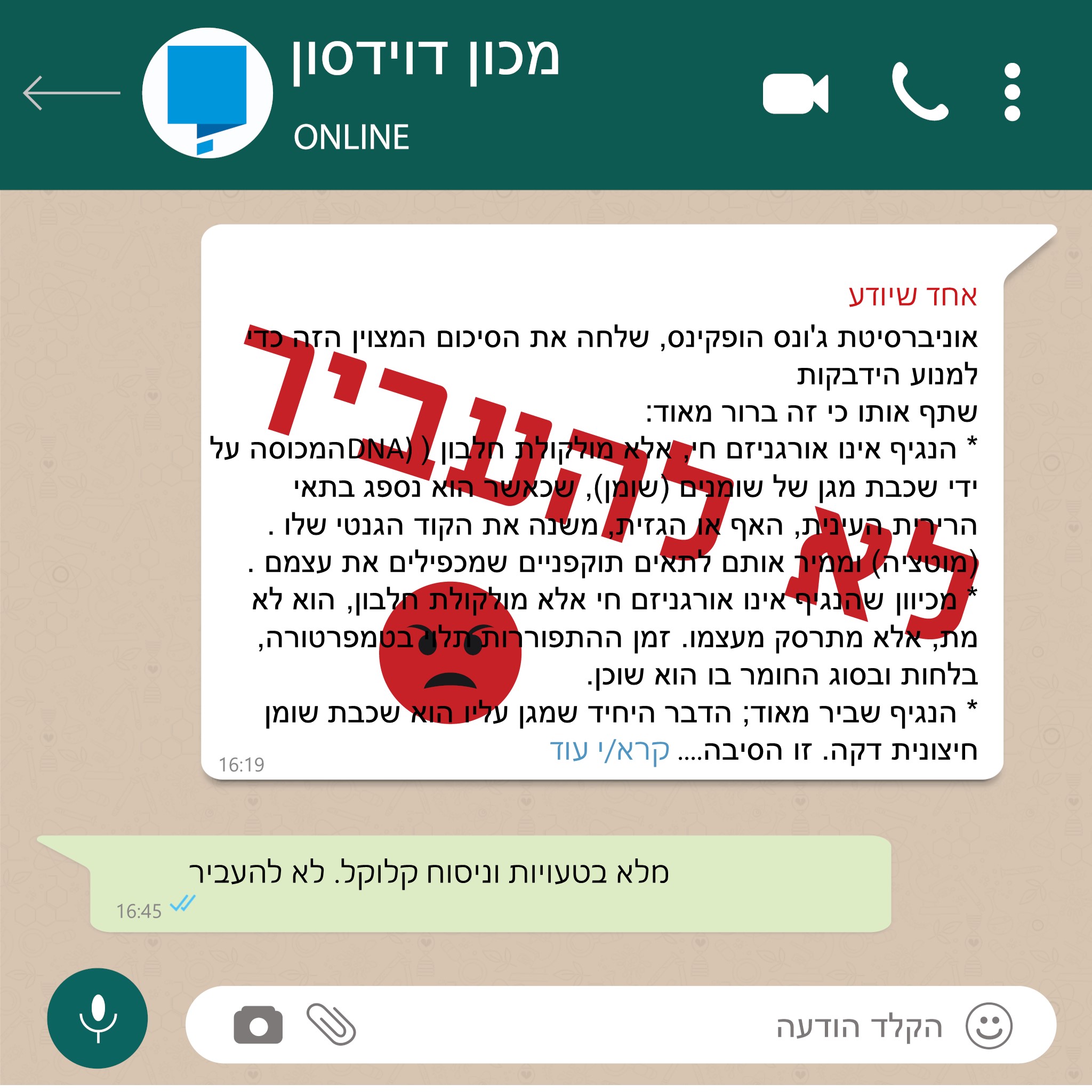 בטח ראיתם את ההודעה הזאת מסתובבת. מעבר לפניה לסמכות (מי זו לריסה דיקובסקי?), ריבוי האמוג'ים ופניה לרגש שכבר מדליקים נורות אדומות, ההודעה מלאה בהנחות שגויות, עובדות שגויות ומסקנות שגויות. בוא נפרק:
