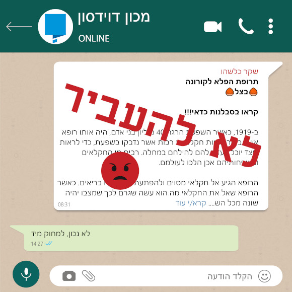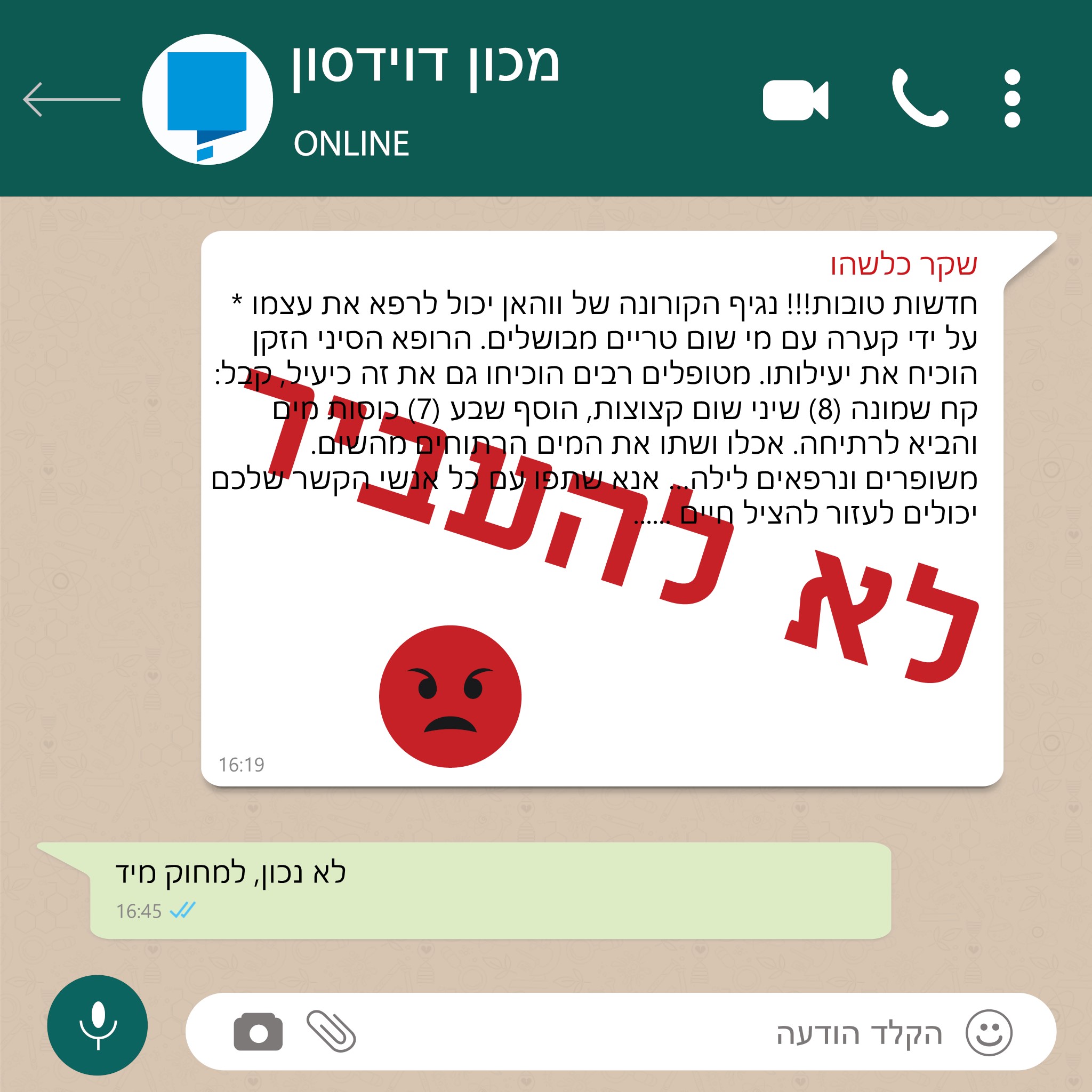 זכרו – אחד הכללים בזיהוי פייק ניוז הוא עצות רפואיות פרקטיות ותרופות קסם. אם זה טוב מדי בכדי להיות אמיתי, כנראה שזה אכן לא אמיתי