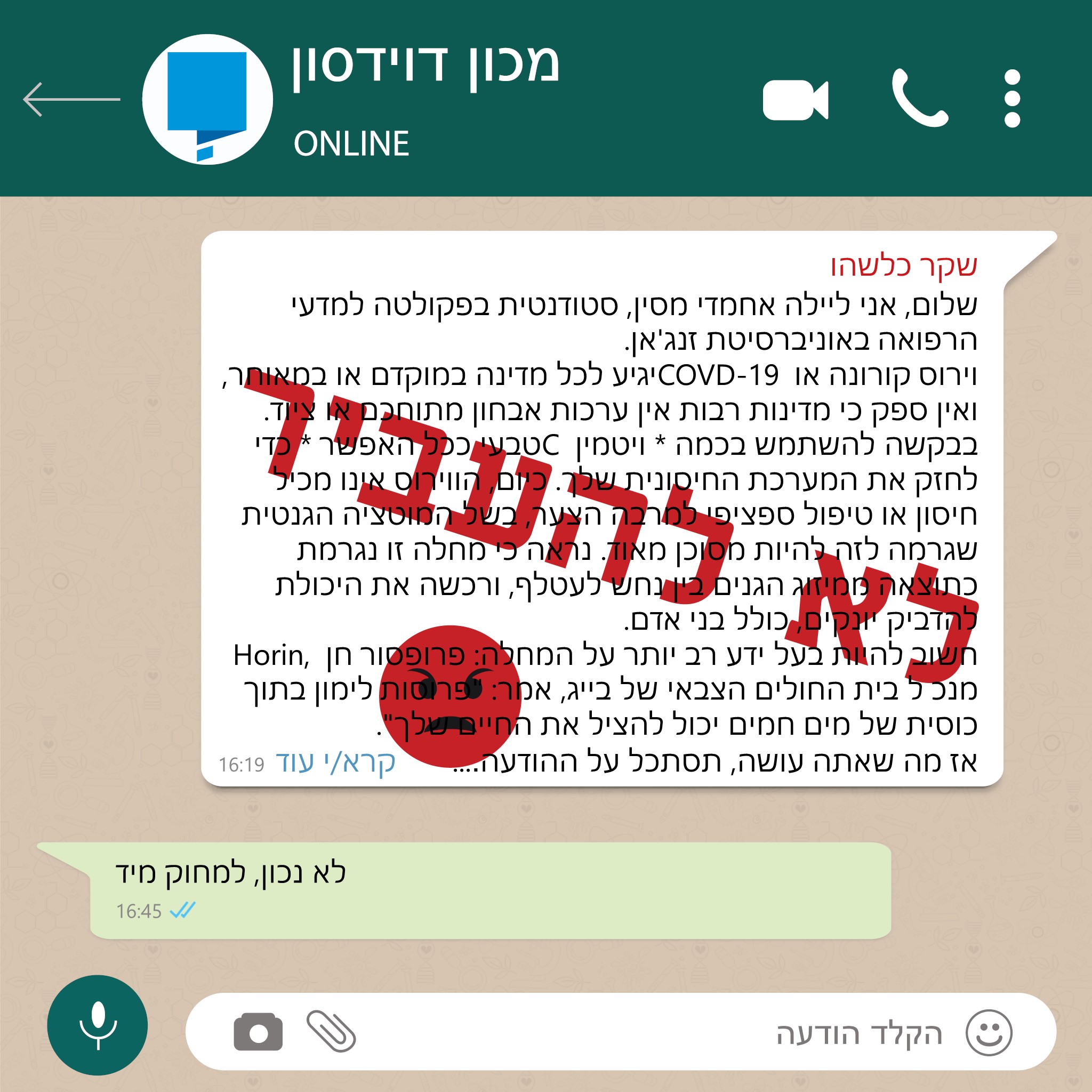 בשנה האחרונה רצות ברשתות החברתיות, בווטסאפ ובתקשורת הודעות על נגיף הקורונה החדש. לעיתים קרובות ההודעות האלו לא מדויקות במקרה הטוב, או שגויות ואפילו מסוכנות במקרה הרע. נתקלתם בהודעות כאלו? אתם מוזמנים לשאול אותנו עליהן בקבוצה "זה נכון?" בפייסבוק. בכתבה הזאת, שתתעדכן לפי הצורך, נפרסם את ההודעות האחרונות שהגיעו אלינו, ונבדוק אם יש בהן אמת. כדי לסייע לכם לזהות הודעות מזויפות בווטסאפ הכנו סרטון עם כמה כללים פשוטים: