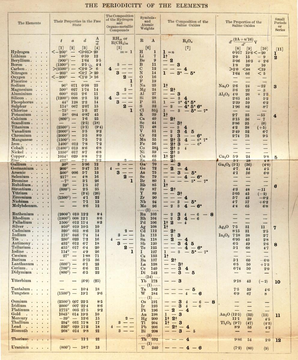 הטבלה המחזורית מספרו של מנדלייב מ-1870.