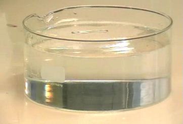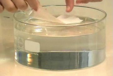 1. מניחים בעדינות על פני המים פיסה של נייר סופג, בגודל קצת יותר גדול מאטב הנייר, כמתואר בתמונה הבאה. הנייר יצוף על פני המים.