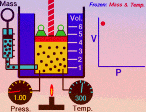 באנימציה הבאה אפשר לראות המחשה של חוק בויל מריוט – על הקשר בין לחץ לנפח של גז (כאשר הטמפרטורה וכמות הגז נשמרת קבועה)