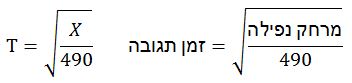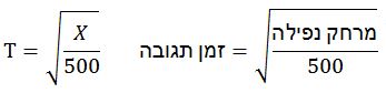 אם נעגל את תאוצת הנפילה החופשית (g) ל-10 מטרים לשנייה בריבוע ונזכור שכדי להפוך סנטימטרים למטרים צריך לחלק ב-100, כלומר לחלק את X ב-100 (כיוון ש- gנתון במטרים, חובה שגם X יהיה באותן יחידות), נקבל את המשוואה שמוצגת בסרט. דרכה אפשר למצוא לפי מרחק הנפילה בסנטימטרים את הזמן שבו החפץ נפל, שהוא זמן התגובה: