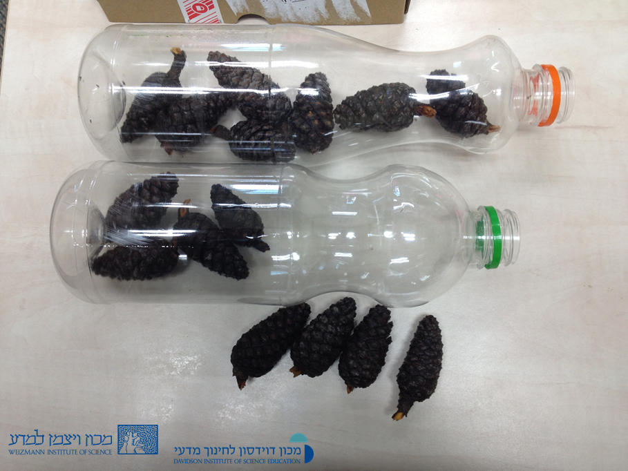 לניסוי ההמשך – צנצנת או בקבוק עם פתח רחב ועוד אצטרובלים