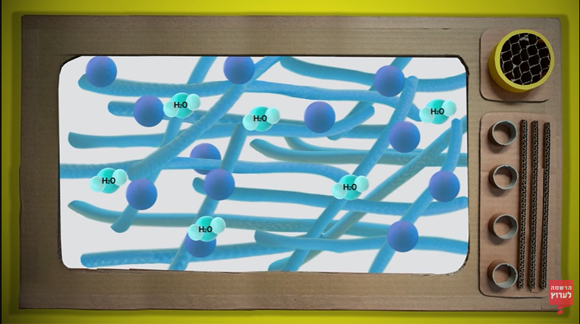 לאחר הוספת מים, השרשראות של שני החלבונים מתארגנות מחדש, נמתחות, נקשרות ביניהן שתי וערב וכך יוצרות מעין רשת ענקית וגמישה. אילוסטרציה של רשת גלוטן הבנויה מגלוטנין וגליאדין | רונית צוויג