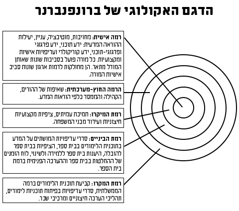 עבודת המורה מורכבת ומשיקה למגוון רב של מערכות ארגוניות ולרמות ארגון שונות. הדגם האקולוגי של ברונפנברנר (Bronfenbrenner, 1979, 1989, 1995) מדגים את הרמות השונות של תפקוד המורה כפרט, בכיתה ובחברה.