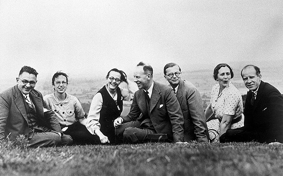 באוניברסיטת קיימברידג’ עבדה במעבדתו של הפרמקולוג ארנסט ורני. פוגט שלישית משמאל, ורני ראשון מימין | מקור: Wikipedia, CC BY 4.0