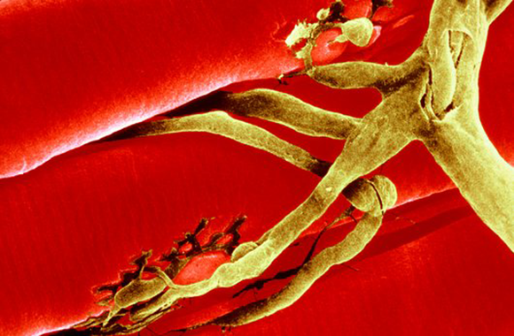 המוליך העצבי אצטילכולין מופרש למרווח בין העצב לשריר, נקשר לקולטנים של השריר וגורם לו להתכווץ. צומת עצב-שריר הוא המפגש בין תא העצב (צהוב) לסיב שריר (אדום) | מקור: Don W. Fawcett / Science Photo Library