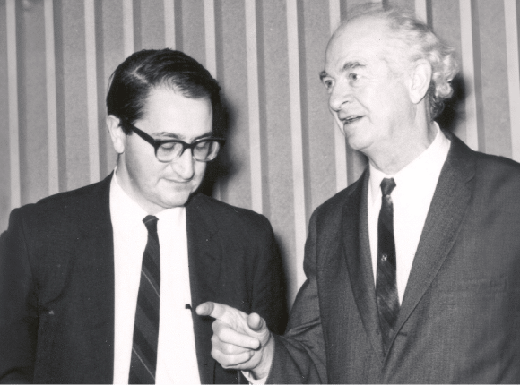 קרפלוס לא שכח כל חייו את העצה הטובה שנתן לו הפיזיקאי הידוע. רוברט אופנהיימר בביקור במכון ויצמן ב-1958 | Boris Carmi /Meitar Collection / National Library of Israel / The Pritzker Family National Photography Collection
