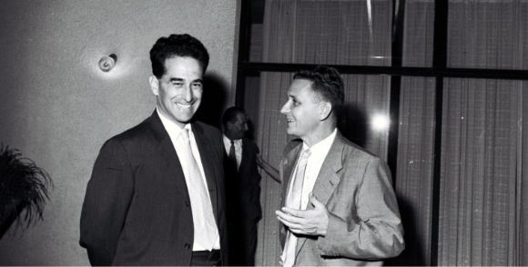 תקופת הפריחה של מכון ויצמן למדע. איזנברג עם עמוס דה-שליט בכינוס בנושא ספקטרוסקופיה במכון, 1960 | מקור: ארכיון מכון ויצמן למדע