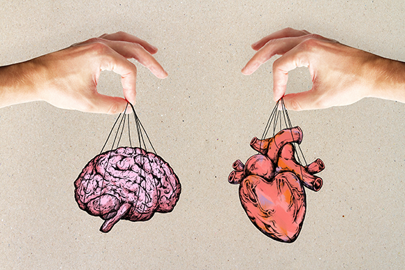 כהנמן וטברסקי הראו כי גם בתחומים כלכליים קבלת ההחלטות שלנו אינה רציונלית, ואנו מסתכלים אחרת על רווח והפסד. אילוסטרציה של החלטה מהמוח או מהלב | Shutterstock, Golden Dayz