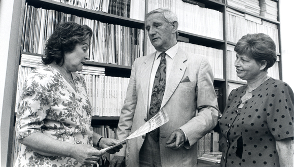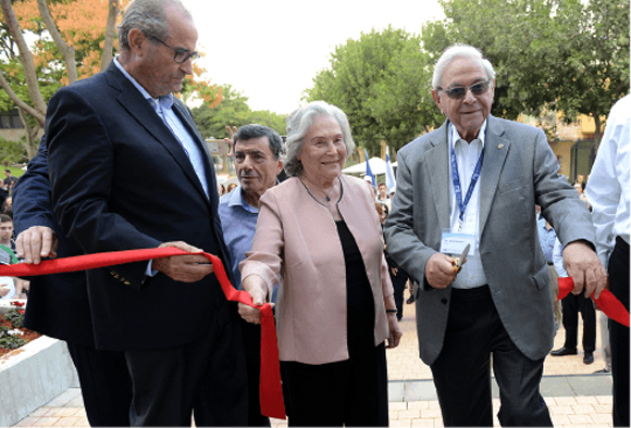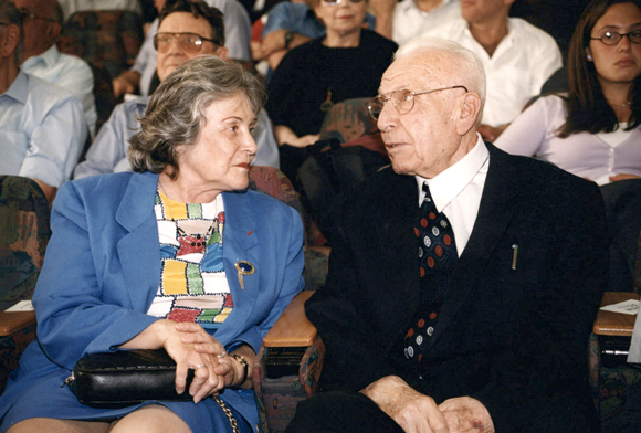 עשרות שנים ביחד. אוריאל (מימין) ורות ארנון בחנוכת מרכז שוורץ/רייסמן, 2016 | צילום: מכון ויצמן למדע