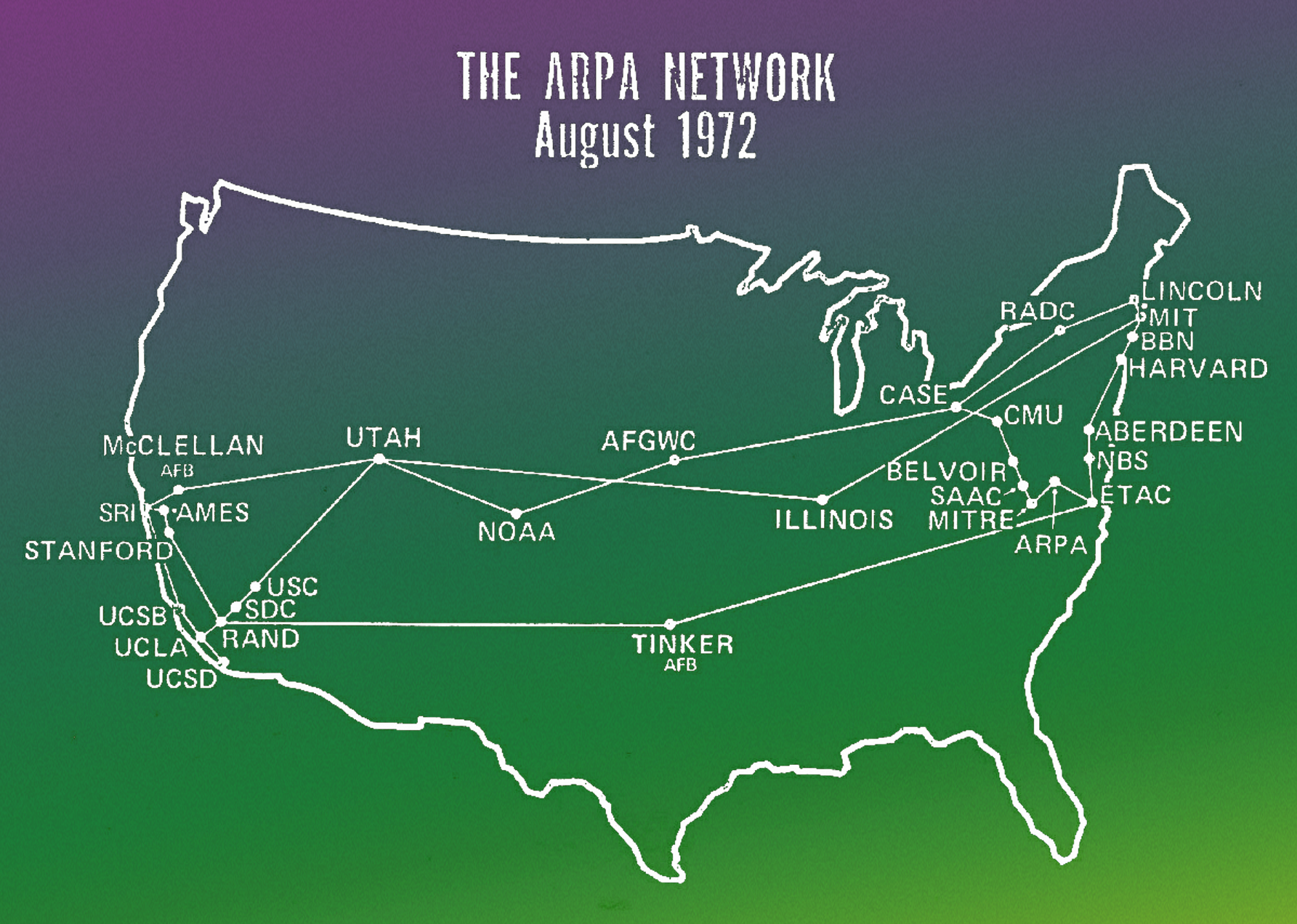 מפה של רשת "ארפאנט" ב-1972 | מקור: Selected ARPANET Maps, Computer Communications Review