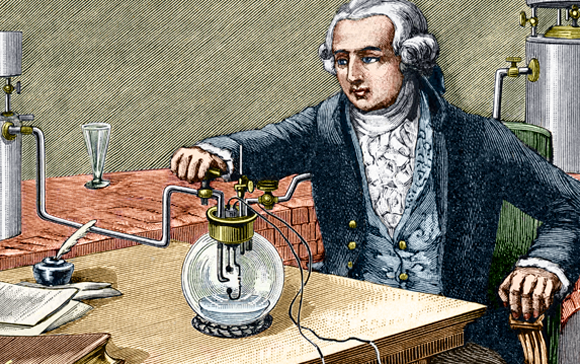 שיטות מדויקות ויסודיות שהפריכו תיאוריות מיושנות. לבואזיה מייצר מים במעבדה | מקור: Science Photo Library
