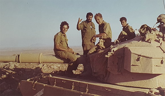 התעקש לחזור לשירות. וולברג (משמאל) עם צוות טנק באימון מילואים | צילום באדיבות משפחת וולברג
