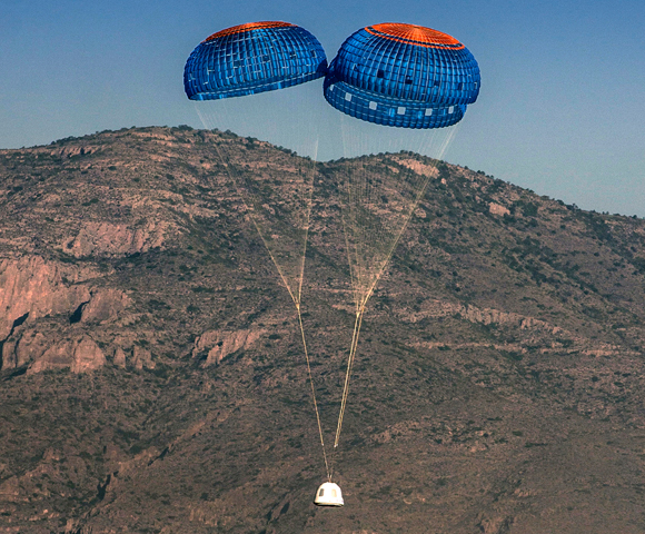 נחיתה רכה. חללית הנוסעים הריקה צונחת בטקסס | צילום: |Blue Origin