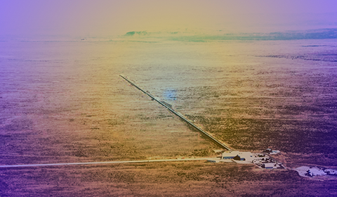 קרן לייזר שעוברת 1,600 ק"מ בצינור. גלאי LIGO | צילום: נאס"א