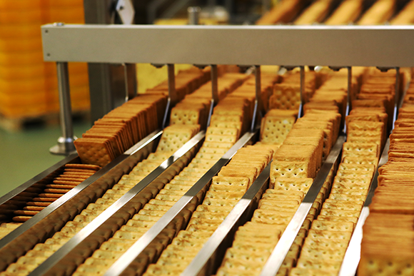 מלח מצוי בכמות גדולה במזונות מעובדים. פס ייצור של מציות במפעל | Cergios, Shuttersyock