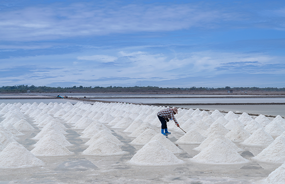 המקורות העיקריים של מלח שולחן הם האוקיינוסים והימים. אידוי וקצירת מלח ים | nymphoenix, Shutterstock