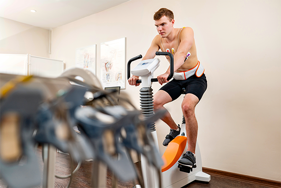 הנבדקים עברו מבדקי כושר גופני ושלל בדיקות רפואיות, בהן מבחני סיבולת לב-ריאה שכללו רכיבה על אופני כושר. גבר צעיר רוכב על אופני כושר כחלק מבדיקה רפואית | Shutterstock, Fusionstudio