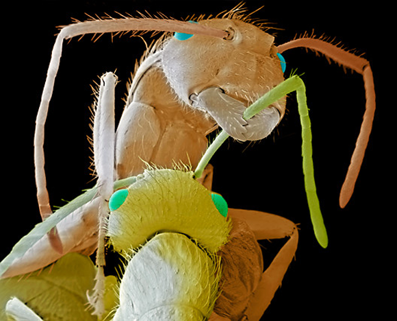 כמו נמלים רבות, הן תוקפניות למדי, ולעיתים קרובות נלחמות בנמלים מקינים אחרים. צילום מיקרוסקופ אלקטרונים של נמלי קמפונית פלורידה נלחמות זו בזו | Volker Steger / Science Photo Library