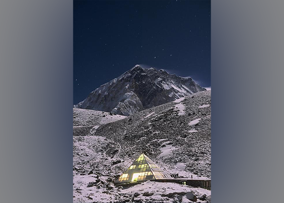 ממוצע הטמפרטורה היומי בתחנה לא השתנה, אך מסת הקרחונים ברכס ההימלאיה מצטמצמת. "תחנת הפירמידה" באוורסט | © Franco Salerno