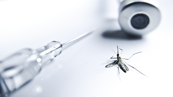 המחלה מאיימת בכל שנה על חלקים גדולים יותר של העולם, והחיסון החדש עשוי להיות כלי חשוב בעצירתה. בקבוקון חיסון, מזרק ויתוש | Shutterstock, Numstocker