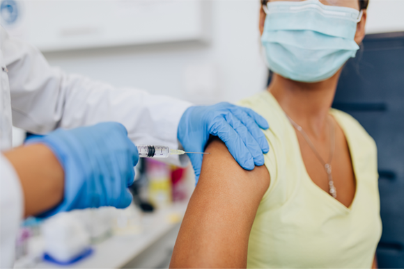 מאז שנת 2020 יותר מ-70 אחוזים מאוכלוסיית העולם קיבלו לפחות מנת חיסון אחת נגד COVID-19. אישה מתחסנת | Shutterstock, hedgehog94