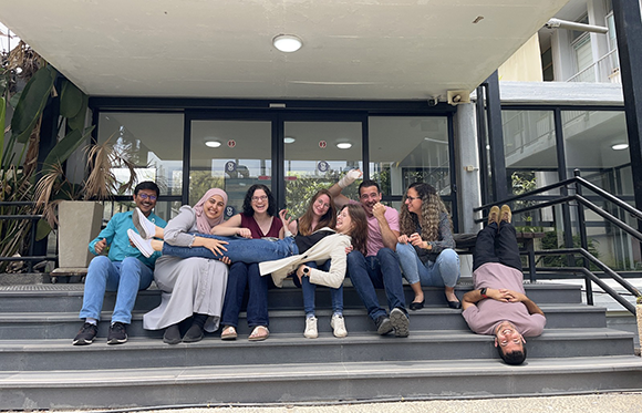 “המצאנו מחדש שיטות כיצד להציג למחשב מולקולות ואת התכונות שלהן” גרשוני-פורן (שלישית משמאל) עם קבוצת המחקר שלה. מימין לשמאל: איתי אלמוג, שני ארז, אדוארדו מאיו, סהר שגיא, פאטימה חליל, שאבושאצ’י צ’קרבורטי וקטרז’ינה מלודזיקובסקה-פיינקו (שוכבת) | צילום באדיבות רננה גרשוני-פורן
