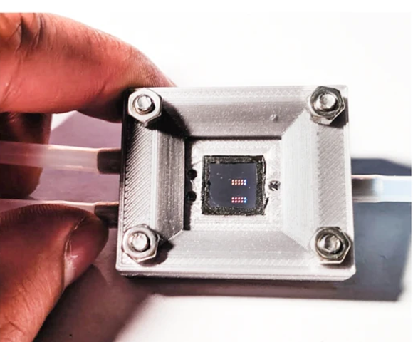 צוות מדענים ומהנדסי חומרים פיתח שבב ביולוגי חדשני שיכול לזהות בתוך דקות מאות אלפי מולקולות שונות שמעידות על נוכחות מחלה. השבב הניסיוני | מתוך המאמר Hu, J. et al,. Nat Commun 14, 4486 2023