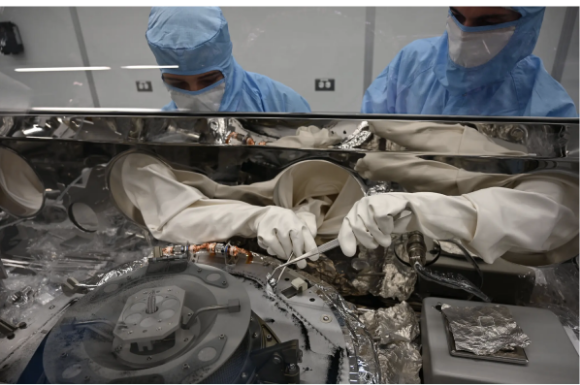 16 אלף סוגי מולקולות בדגימה של כ-120 גרם. חוקרים של נאס"א במרכז החלל ג'ונסון אוספים דגימות קרקע מהחלק החיצוני של הקפסולה, לפני פתיחתה | צילום: NASA