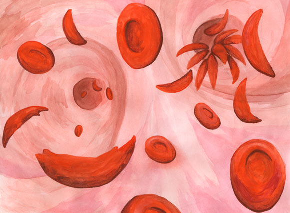 תאי דם אדומים תקינים ועגולים, לעומת תאי דם פגומים של חולה באנמיה חרמשית | איור: Science Photo Library