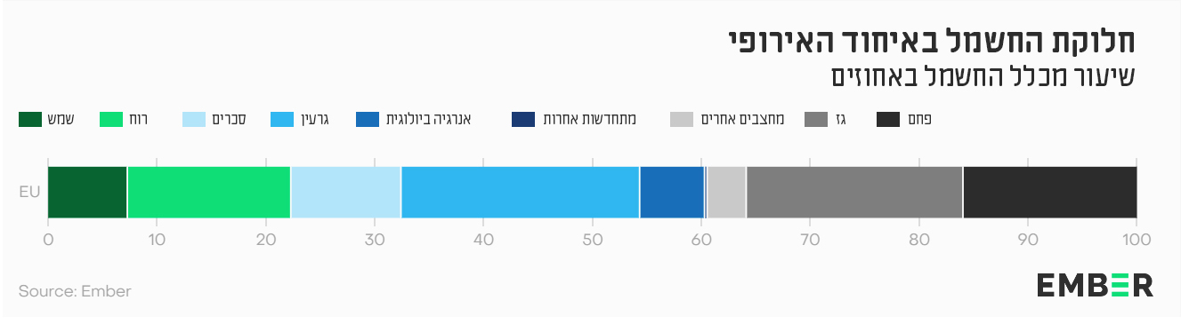 התפלגות מקורות האנרגיה במדינות האיחוד האירופי, 2022. מקור: דו"ח אמבר
