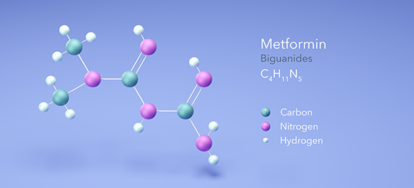 תרופה שכיחה לסוכרת מסוג 2 שהולכת ומבססת את מקומה בטיפול בסוכרת היריון. מולקולת מטפורמין | SergeiShimanovich, Shutterstock