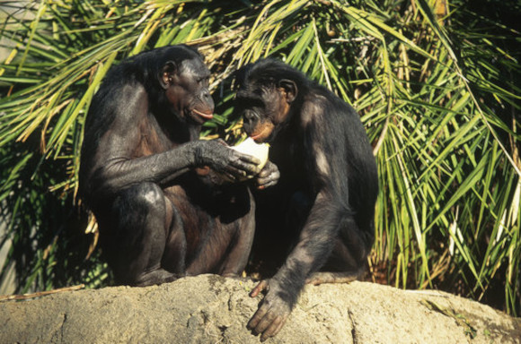 פרטים מקבוצות שונות אפילו חולקים מזון. בונובו חולקים מלון | צילום: Kenneth W. Fink/Science Photo Library